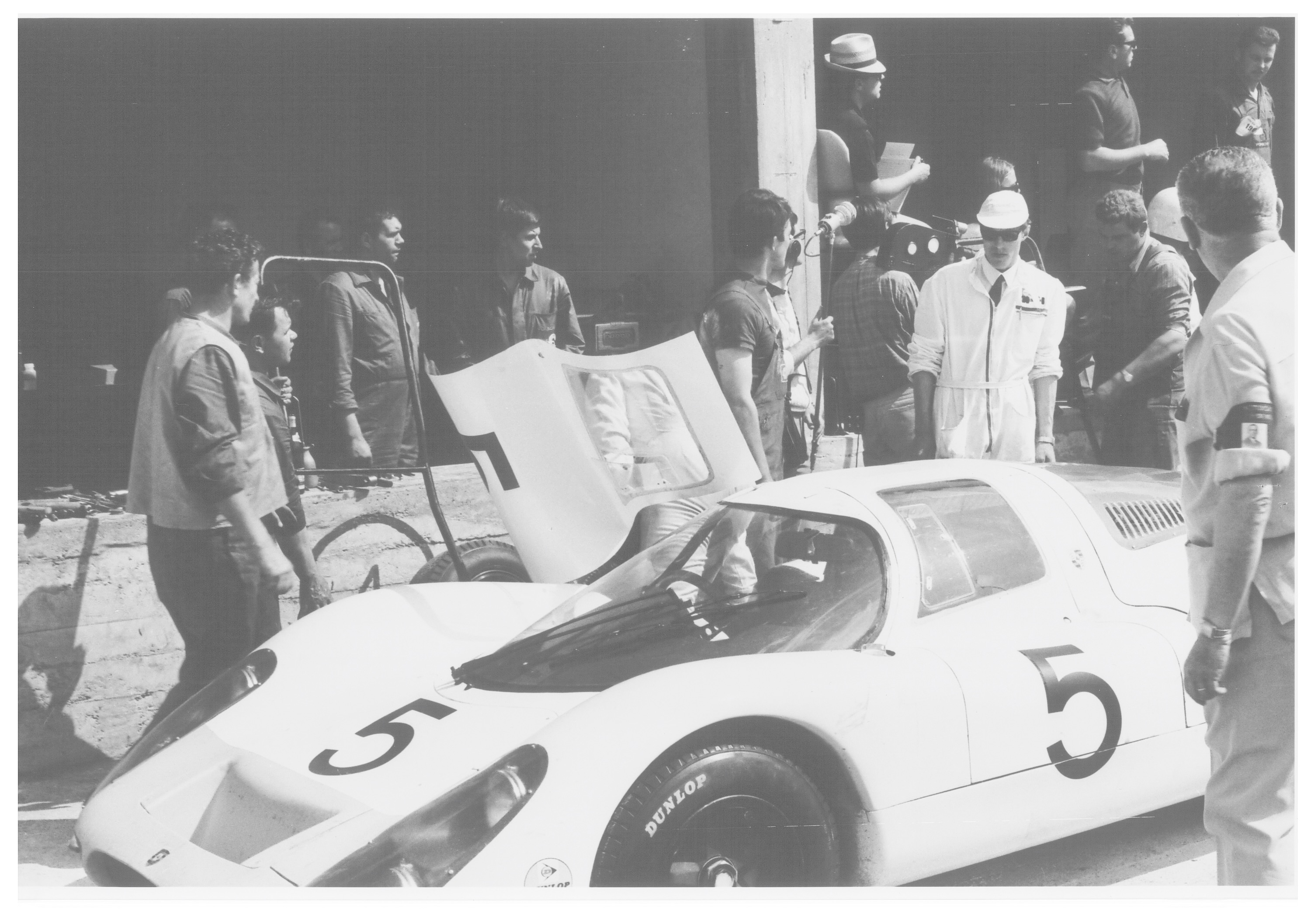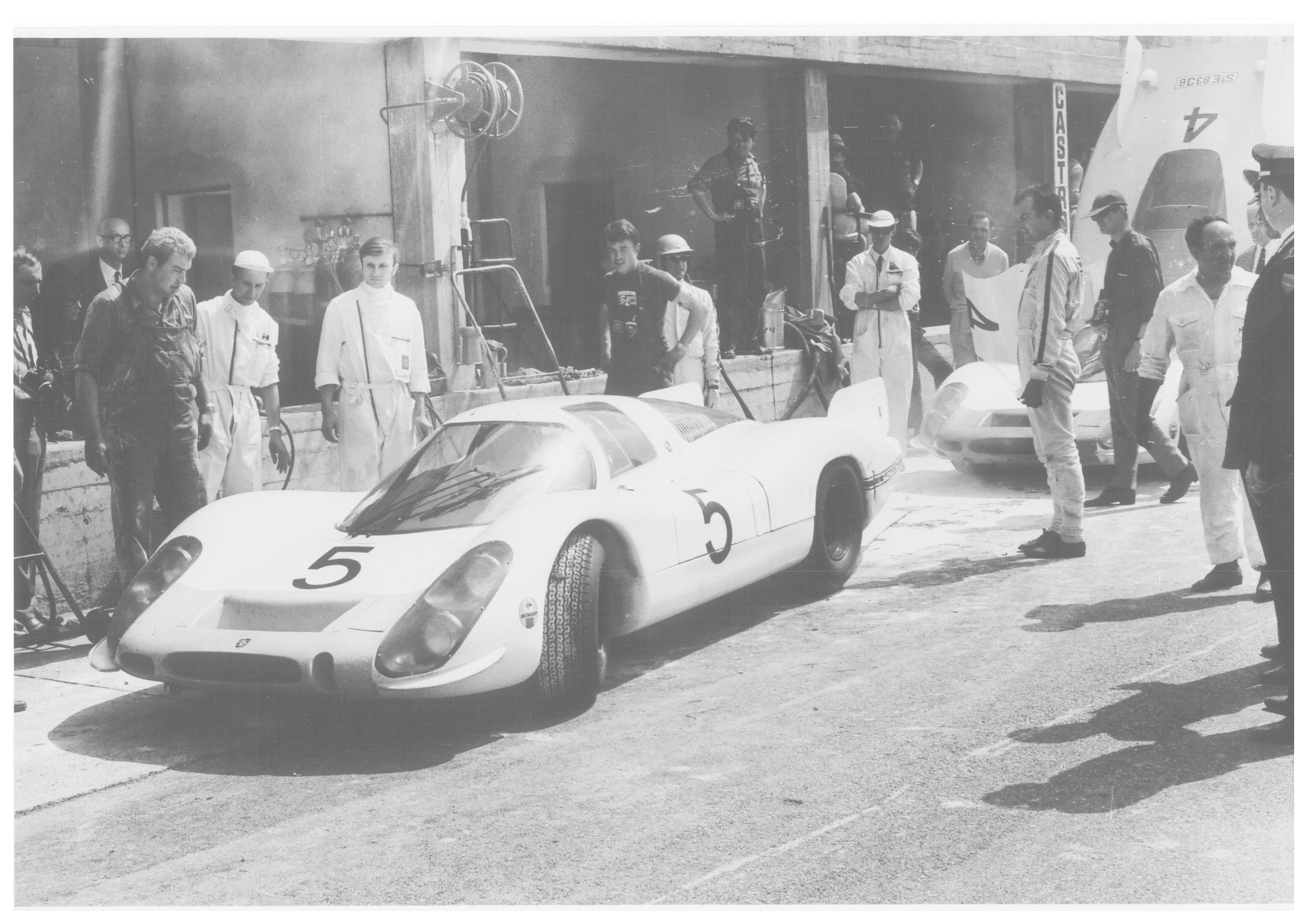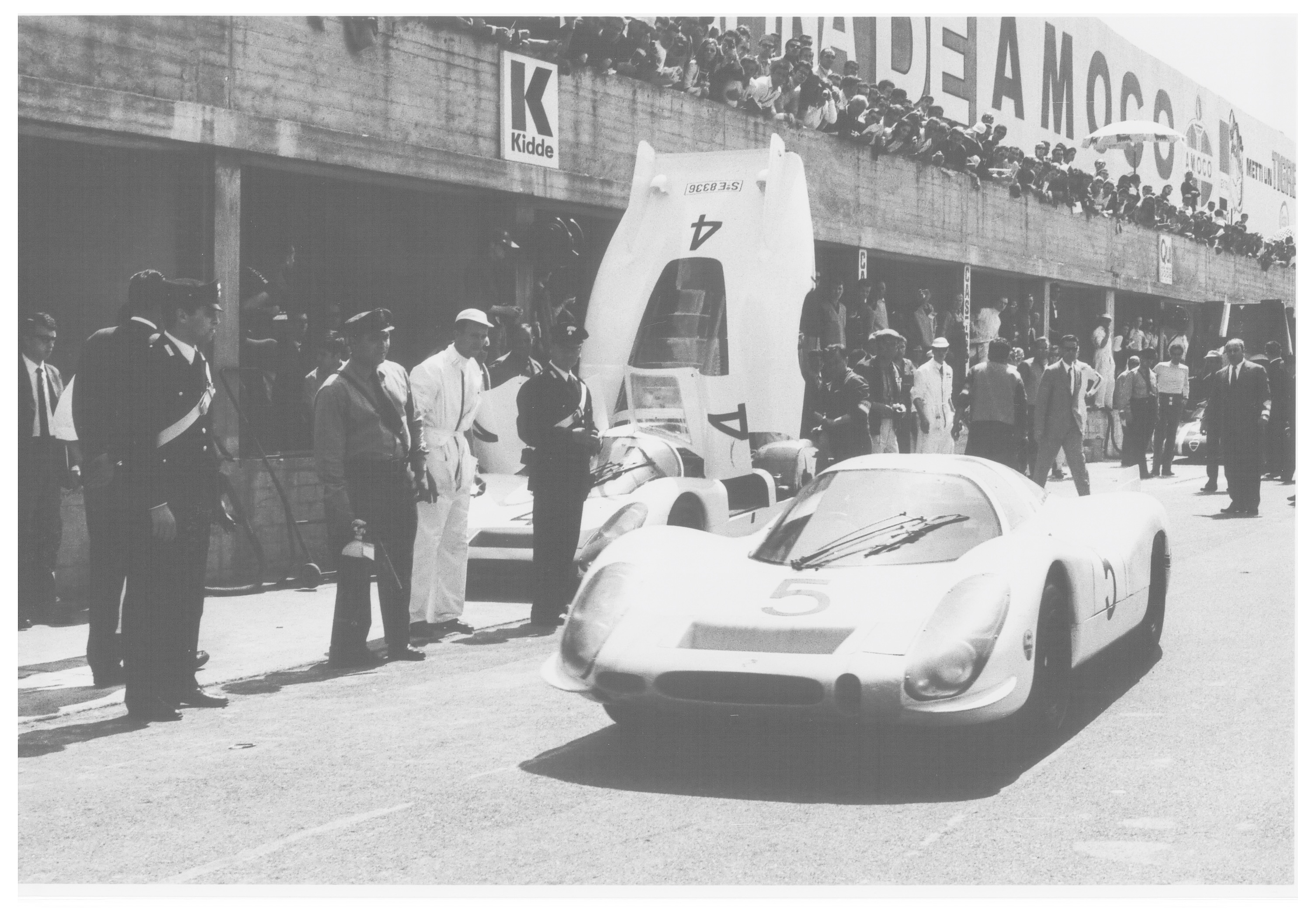 For the first time, Porsche would be able to compete not only for class wins, but also for overall victory and the World Sports Car Championship title. Indeed, right after the 1967 Le Mans race, the regulations changed and the CSI limited the Sport Prototype (Group 6) category to 3-litre cars, thereby banning the 7-litre Fords and 4-litre Ferraris. Porsche immediately began working on an ambitious project engine called the 916: a four-cam, six-cylinder engine that they turned into a 3-litre, eight-cylinder engine. Since the Porsche 907, which was powered by an eight-cylinder, 2.2-litre engine derived from the 1.5-litre F1 unit, was an excellent basis, the decision was made to install the new 3.0-litre engine, which produced 335 hp, in that chassis.