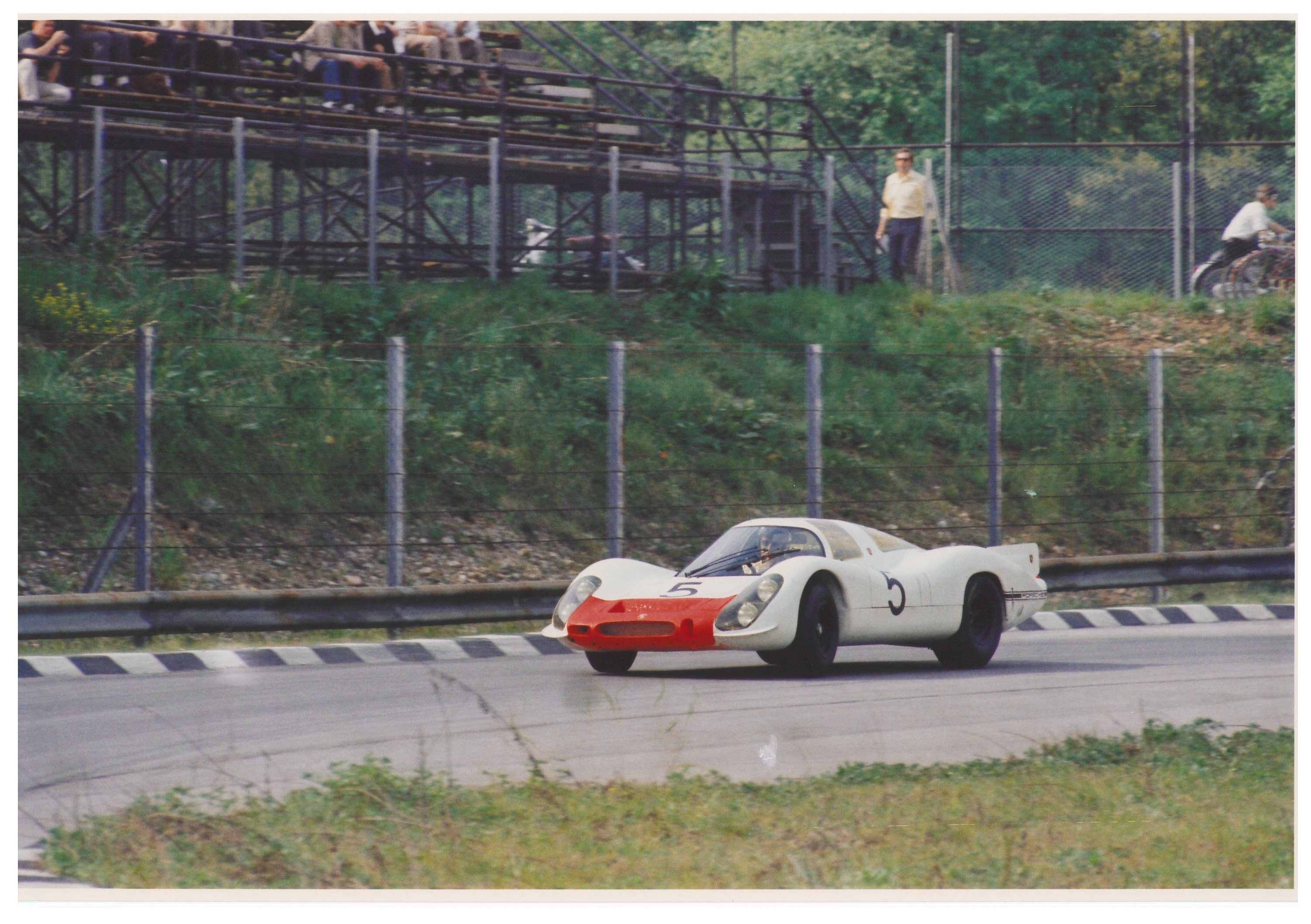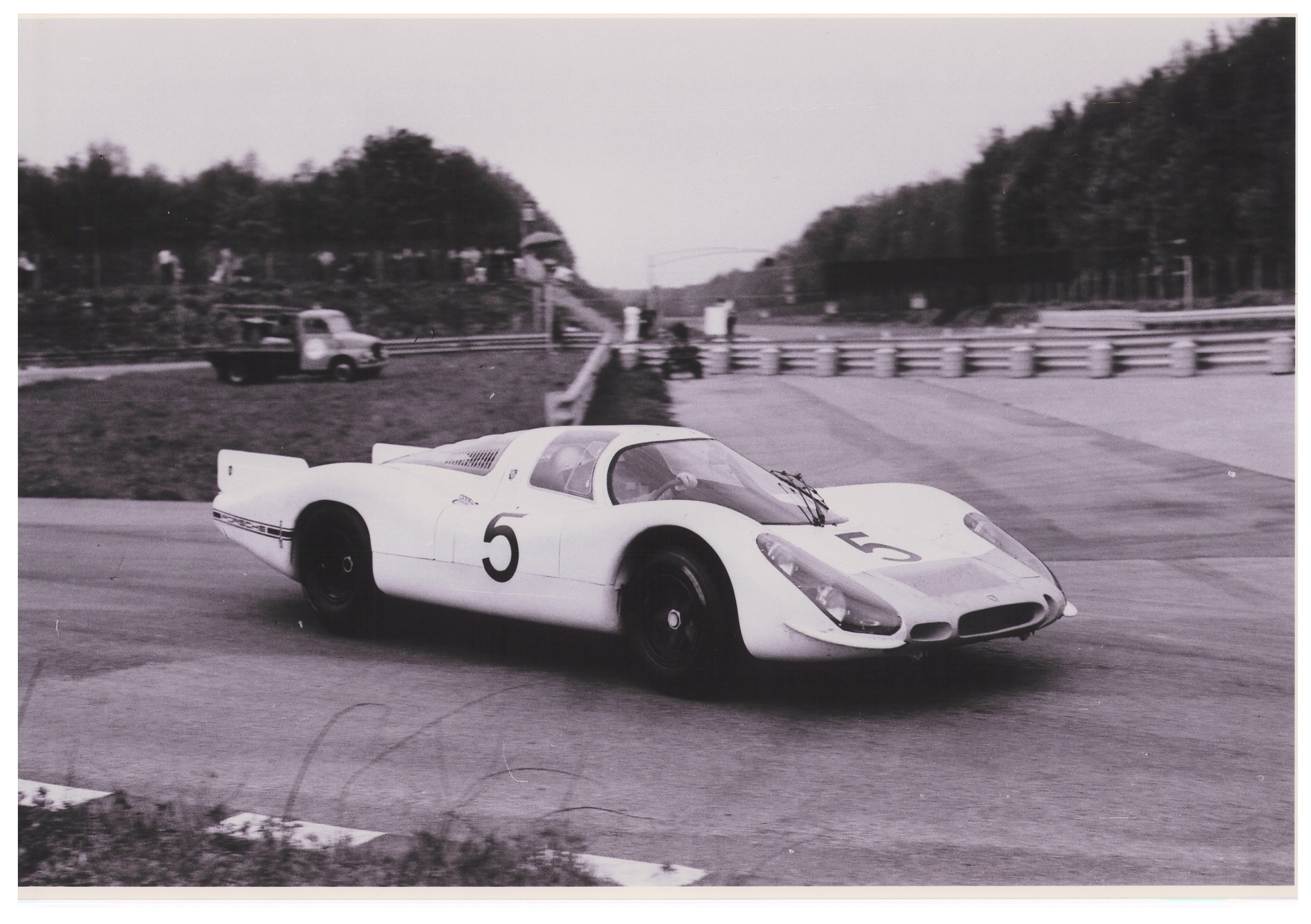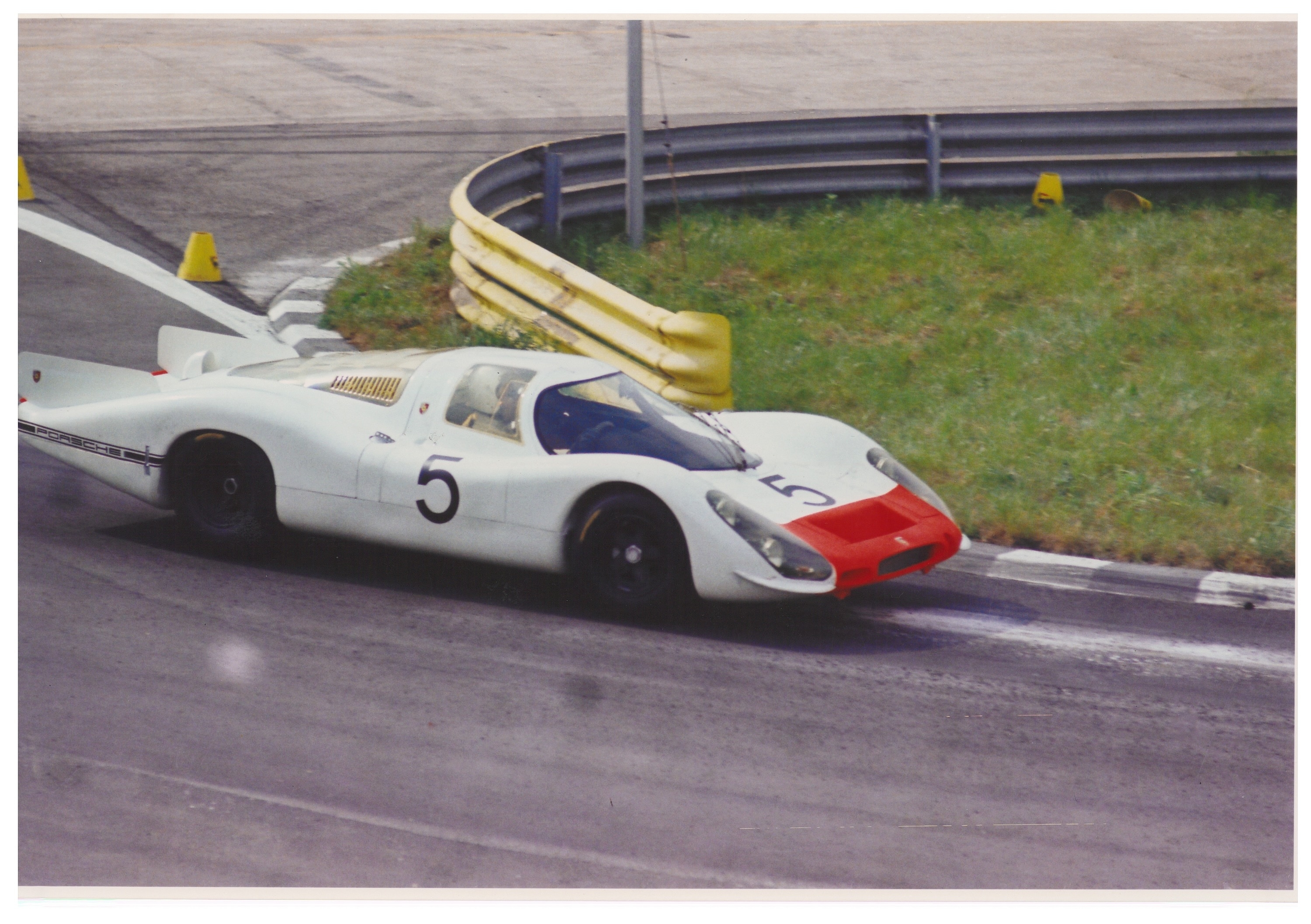 This 1968 908 LH chassis 004, a sculptural masterpiece is the second and final steel chassis built. It debuted at the Monza 1000 km, which was the first outing for the new 908 LH. Indeed, for the 24 Hours of Daytona, the new car was deemed not ready. This was the first time that the 908s would race at a high-speed track, and they were fitted with the iconic fins on the tail. These reportedly helped with stability, and were even heightened before the race. With the number 5, it was entered by former Ferrari star driver Ludovico Scarfiotti and Gerhard Mitter, and it qualified in 4th place. They made a great start, battling with JWA's GT40s. However, as reported in the June 1968 issue of Motorsport Magazine, 'At the 26-lap mark, just after the quarter distance, the second 3-litre Porsche came into the pits with a poorly running engine. After two attempts to adjust the throttle linkage, it was discovered that one of the fuel injection pipe unions was loose. This left the two Gulf Fords in complete command". After repairs, the car finished the race in 11th position overall and 3rd in the Prototype class. The next outing for 004 was the SPA 1000 km. It was then fitted with new 15-inch wheels and low-profile tyres, and was driven by Vic Elford, who was given the number 5T for practice only. Elford was actually given the choice of starting the race with the K or LH version and chose the 908 K, as the race was to take place in heavy rain, as reported in period magazines. Porsche did not use 908-004 anymore as the 908s would race from Le Mans with aluminium chassis and movable rear wings.